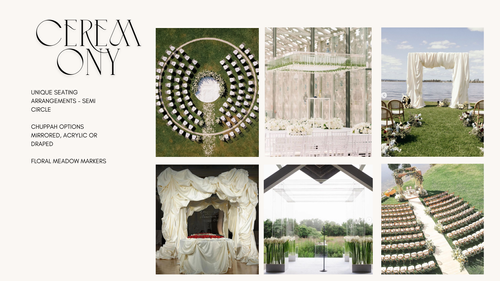 Preceding your planning process with a detailed design vision document is how it's done by insiders in fashion and events. These execution-ready documents create cohesion from day one. Faster alignment, fewer revisions, confident decisions.
